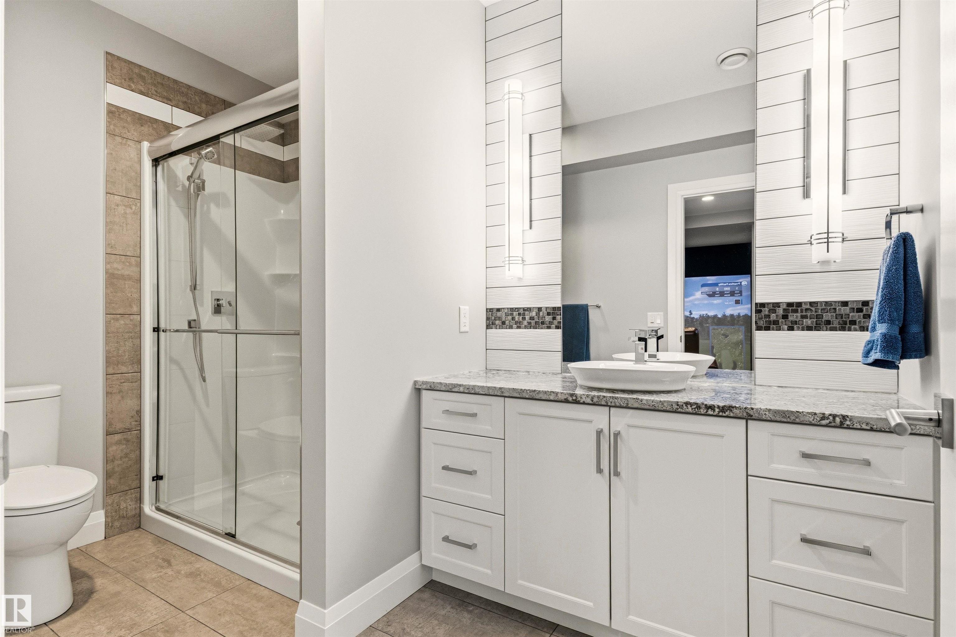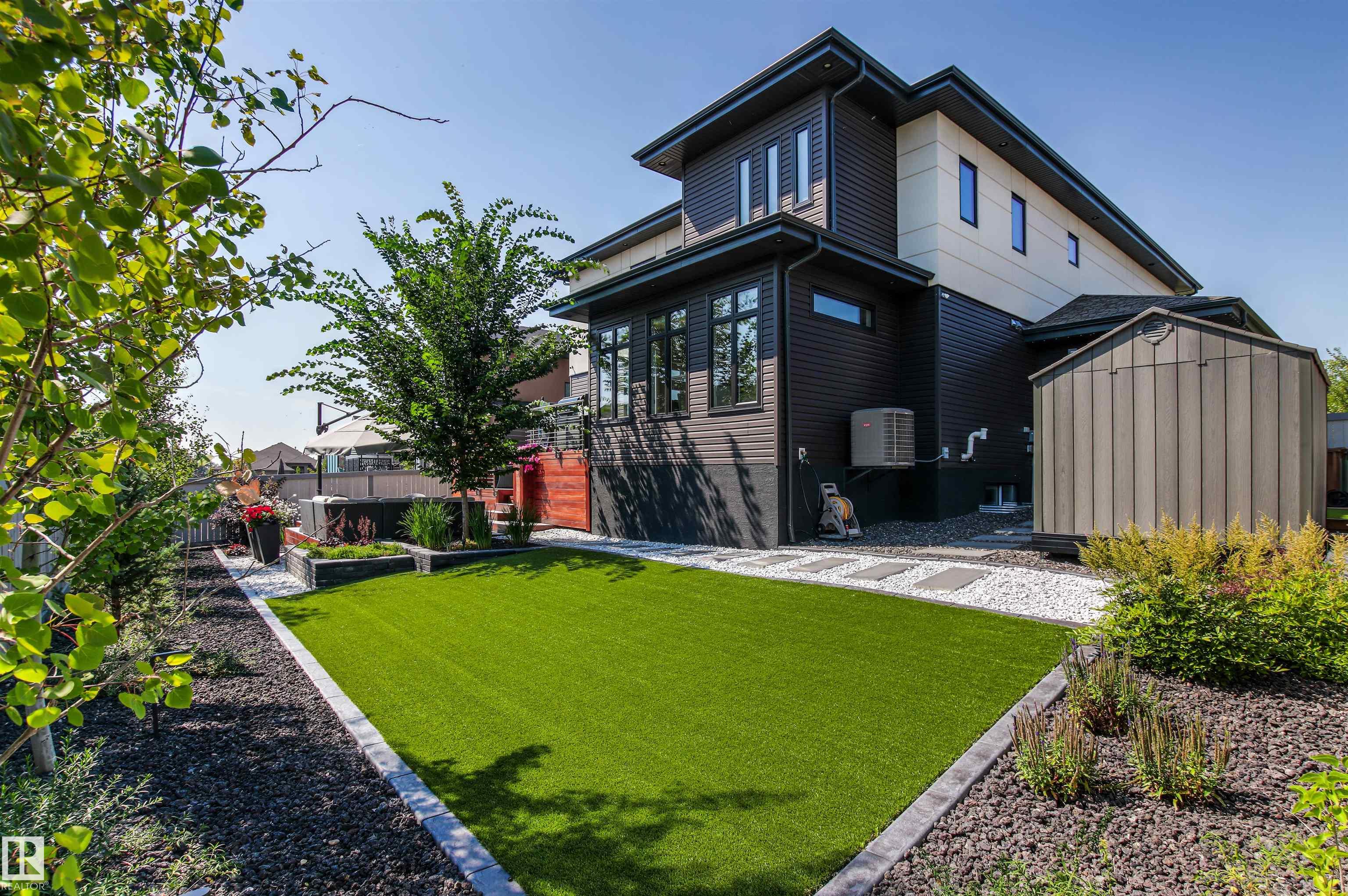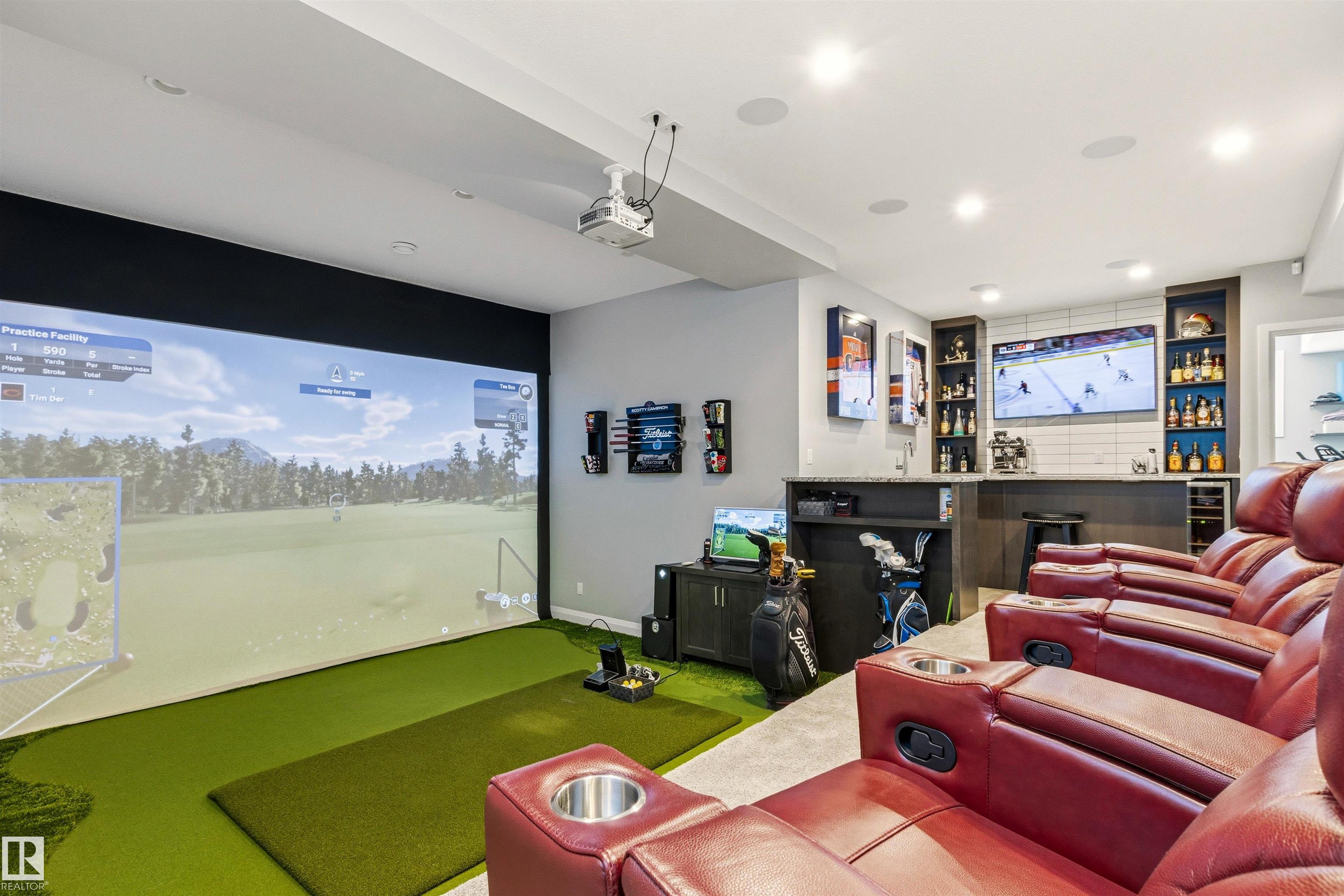 SWING AWAY to an IMPECCABLY MAINTAINED residence where luxury, leisure, and craftsmanship converge. This exceptional custom home offers refined living at every turn. Over 4400 square feet of living space with up to 6 bedrooms, 5 baths. Main level features a generous HOME OFFICE, bright open concept living spaces with coiffured ceilings, anchored by a CHEFS KITCHEN with custom cabinetry, premium appliances, and an oversized island perfect for gathering. Large windows overlook the stunning rear yard with MULTI-TIERED DECK featuring Kayu Batu hardwood, built-in fireplace, firepit, maintenance free turf! Upstairs to the beautiful primary with spa inspired ensuite. At its heart is an architect designed Media Entertainment Suite including a GOLF SIMULATOR and THEATRE that transforms everyday living into an immersive, year round experience for the whole family. 925 sq ft TRIPLE HEATED GARAGE with 18' main door, epoxy floors, twin drains, 220V, storage shelves and workbench. Incredible location across from park.