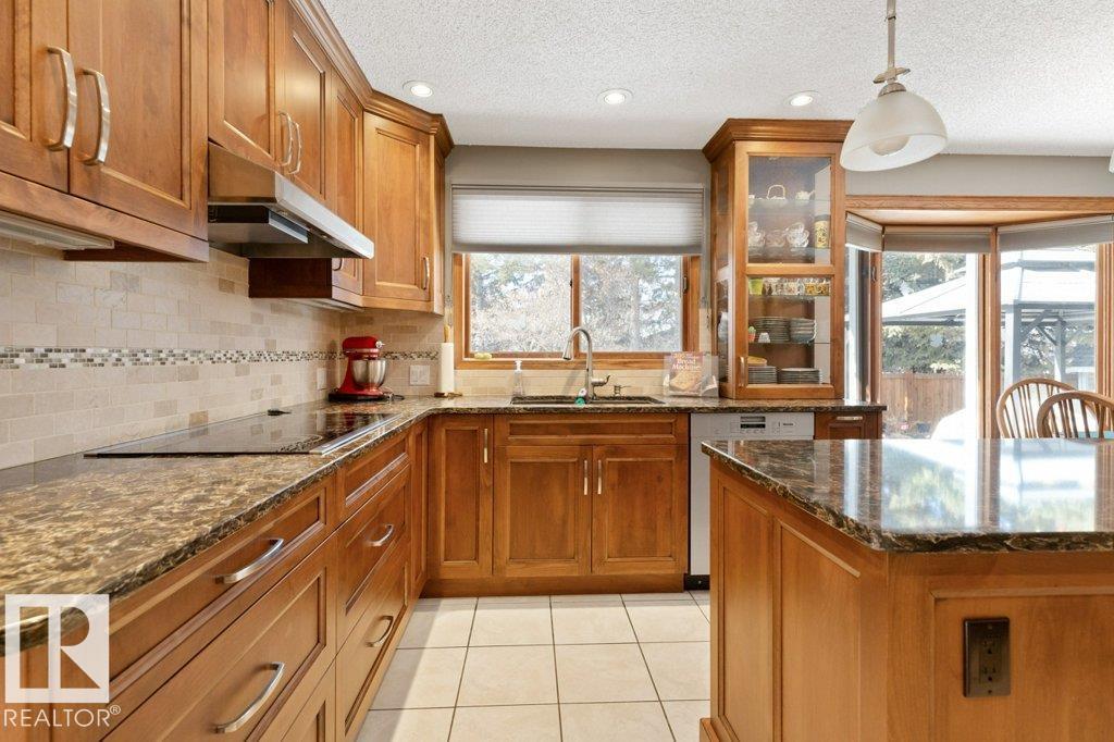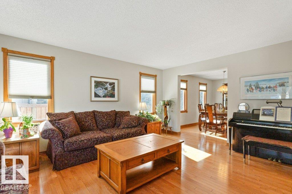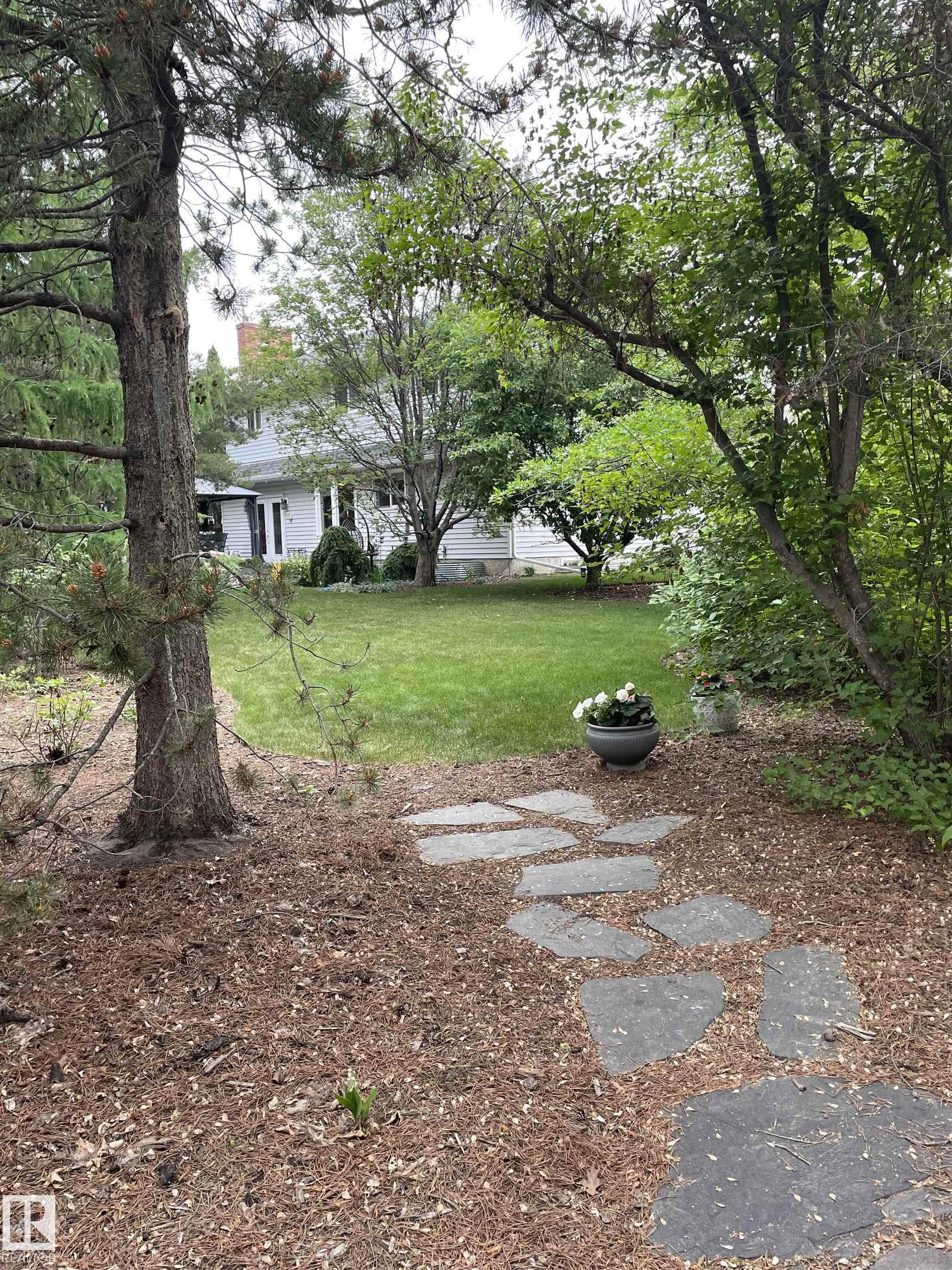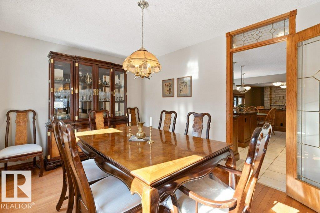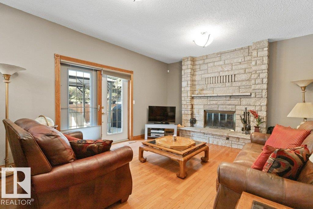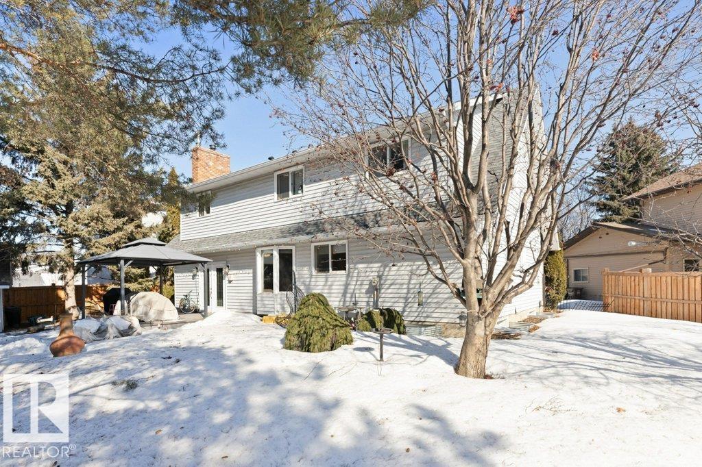 Welcome to this beautifully maintained original owner family home tucked away on a quiet cul-de-sac in desirable Lacombe Park. Set on a large pie lot surrounded by mature trees, this property offers privacy while remaining close to schools, parks, trails, shopping, & amenities. The traditional layout is ideal for family living with formal living & dining rooms, plus a spacious eat-in kitchen fully renovated in 2013 that opens to a warm family room featuring a distinctive wood-burning fireplace with fossilized sandstone surround. Main floor laundry and upgraded hardwood and tile flooring add everyday convenience. Upstairs offers four generous bedrooms, while the fully finished basement expands the living space with a large rec room with gas fireplace, two additional bedrooms, a 3-piece bath, & ample storage. Bathrooms have been updated and shingles replaced in 2019. The professionally landscaped yard (2020) features a stone patio & composite deck for entertaining. Includes 0versized double attached garage