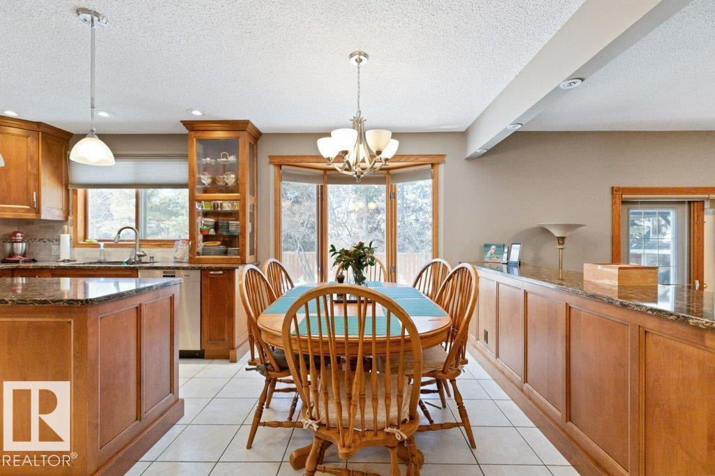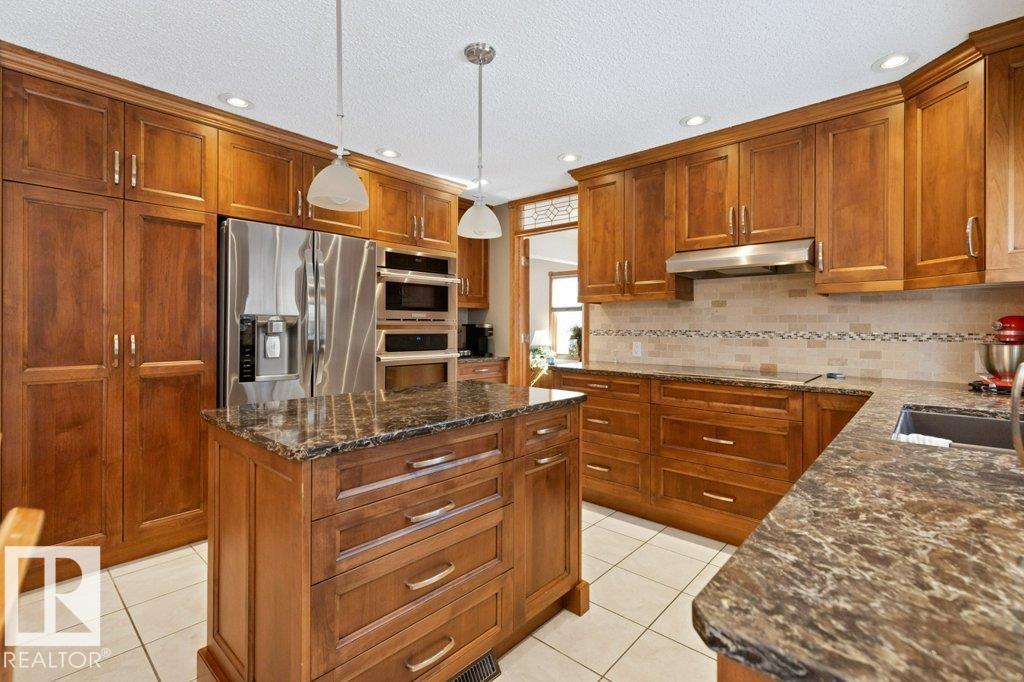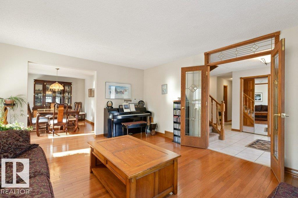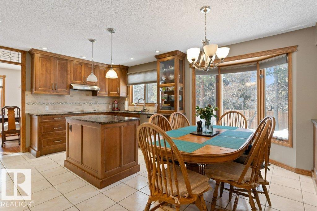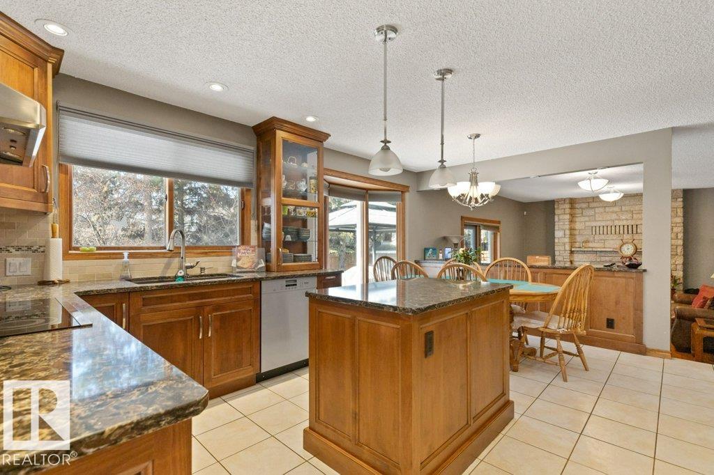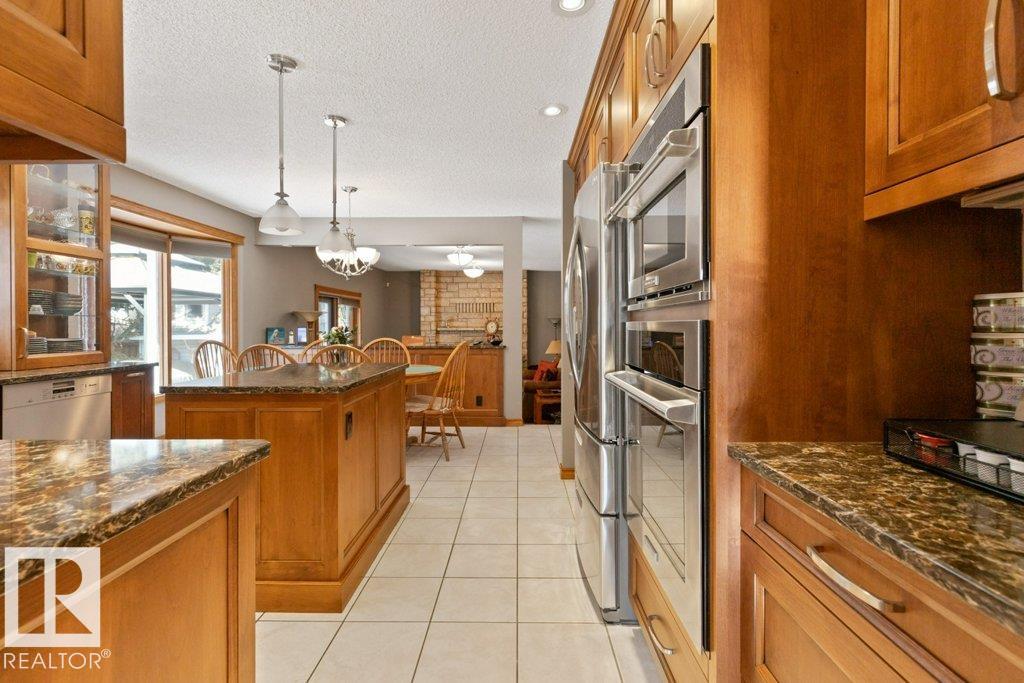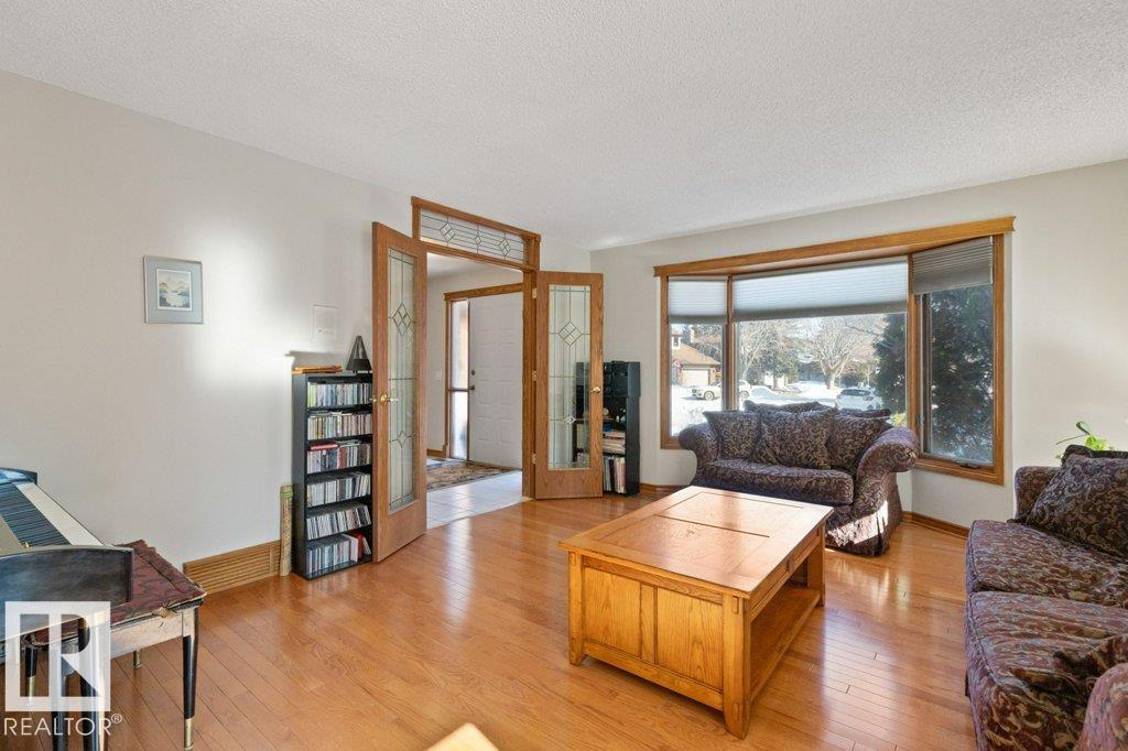 Welcome to this beautifully maintained original owner family home tucked away on a quiet cul-de-sac in desirable Lacombe Park. Set on a large pie lot surrounded by mature trees, this property offers privacy while remaining close to schools, parks, trails, shopping, & amenities. The traditional layout is ideal for family living with formal living & dining rooms, plus a spacious eat-in kitchen fully renovated in 2013 that opens to a warm family room featuring a distinctive wood-burning fireplace with fossilized sandstone surround. Main floor laundry and upgraded hardwood and tile flooring add everyday convenience. Upstairs offers four generous bedrooms, while the fully finished basement expands the living space with a large rec room with gas fireplace, two additional bedrooms, a 3-piece bath, & ample storage. Bathrooms have been updated and shingles replaced in 2019. The professionally landscaped yard (2020) features a stone patio & composite deck for entertaining. Includes 0versized double attached garage