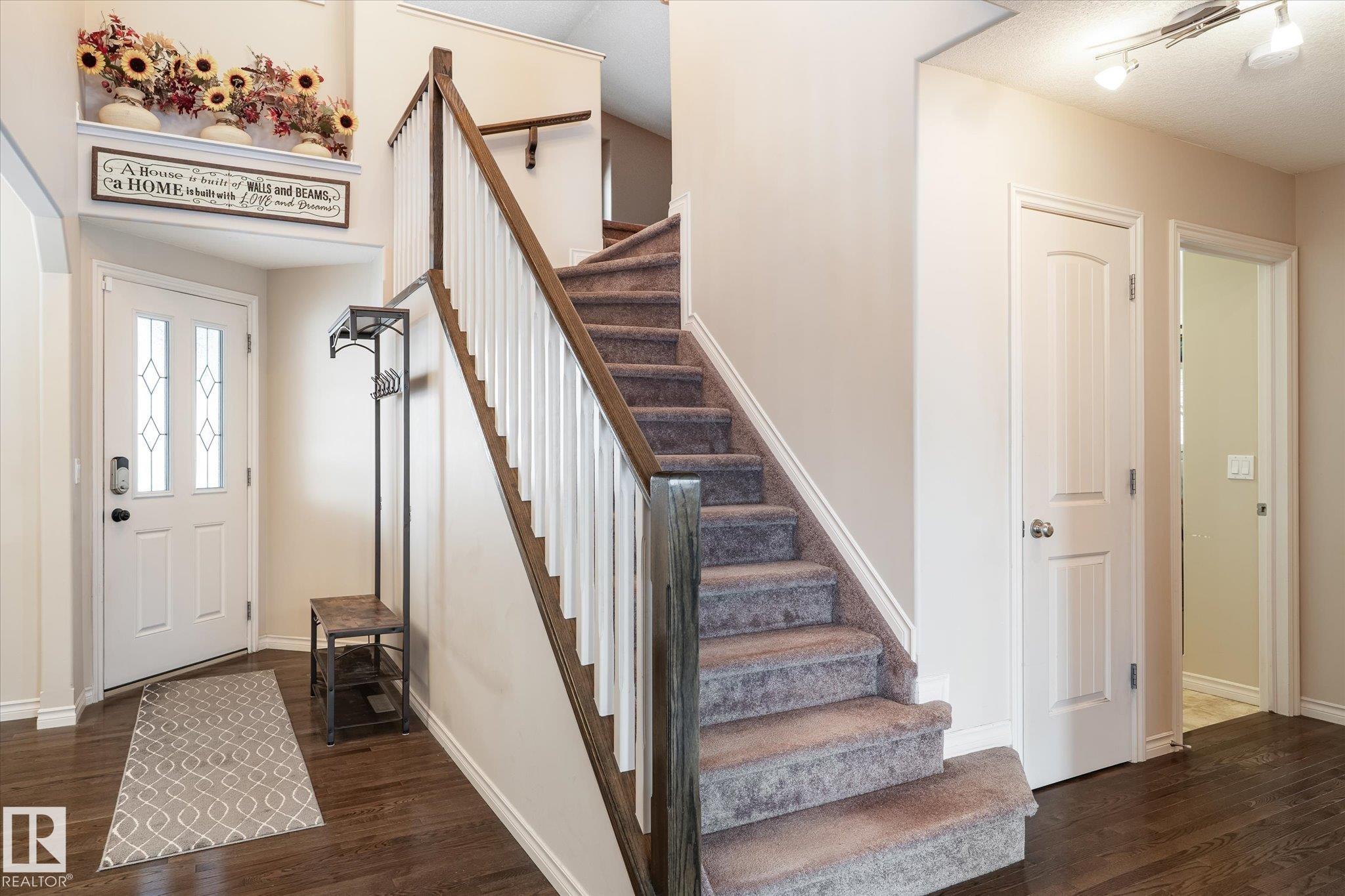 Welcome to this stunning 4-bedroom, 2-storey home nestled on a large corner lot in the community of North Ridge! Bright and open concept throughout, featuring beautiful hardwood floors, plush carpet, and lino, a spacious formal dining room, and a modern kitchen perfect for everyday living and entertaining. The inviting family room boasts a cozy gas fireplace with elegant built-ins, while the generous bonus room upstairs offers endless possibilities for a home theatre, playroom, or office. Retreat to the primary suite complete with a walk-in closet and luxurious ensuite featuring a corner soaker tub. The convenient main floor laundry adds to the functionality of this home. A fully finished basement provides excellent additional living space. Step outside to your private, fenced backyard with a beautiful tiered deck -- perfect for summer gatherings and outdoor entertaining. Stay comfortable year-round with central air conditioning. Located just steps from top-rated schools, scenic trails, and playgrounds.