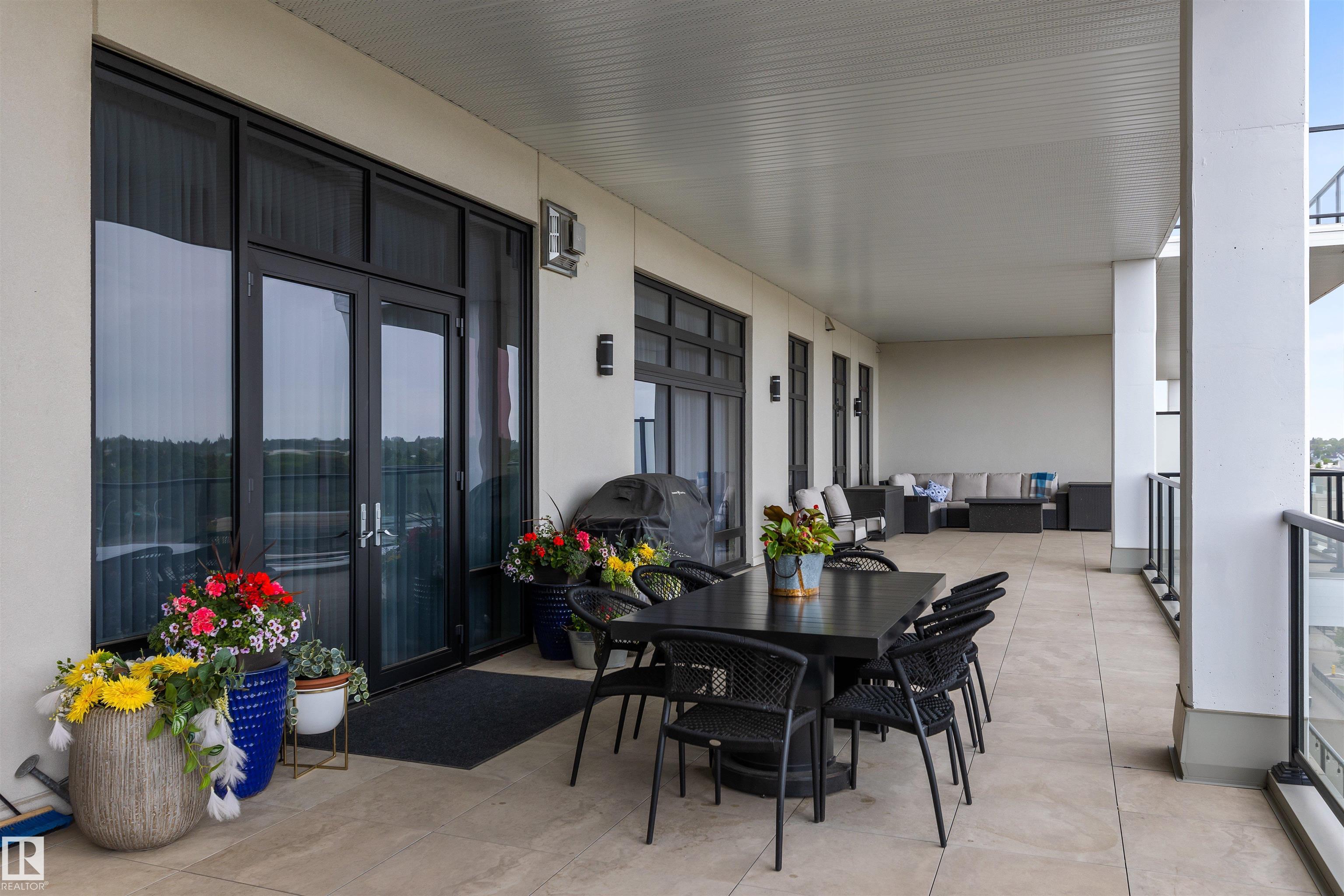 Botanica is LUXURY LIVING in the heart of St. Albert! Nestled on the Sturgeon River, this exclusive penthouse offers towering 14 ft ceilings 2 spacious bedrooms & den. Floor to ceiling windows, A/C, UPGRADES GALORE entertainers' paradise white DREAM kitchen featuring a large island w/quartz counters, pendant lighting & MIELE appliances Spacious, open social/living area w/fireplace & access to the STUNNING 1400 sq ft COVERED PATIO! There's ample in-suite storage & 3 titled storage units PLUS A PRIVATE 2 car garage in the PARKADE. Upgraded vinyl plank flooring blankets the suite throughout. The primary bedroom features a huge walk-in closet & spa-like 5 pce ensuite w/INFLOOR heat, dual sinks, soaker tub, steam shower & insuite laundry. Amenities include a 2-story fitness area, social hall & lounges, an amazing ROOFTOP TERRACE & guest suite. Located steps away from the Shops of Boudreau & the river walk trail system. This penthouse is sure to impress, its the epitome of luxurious & sophisticated living.