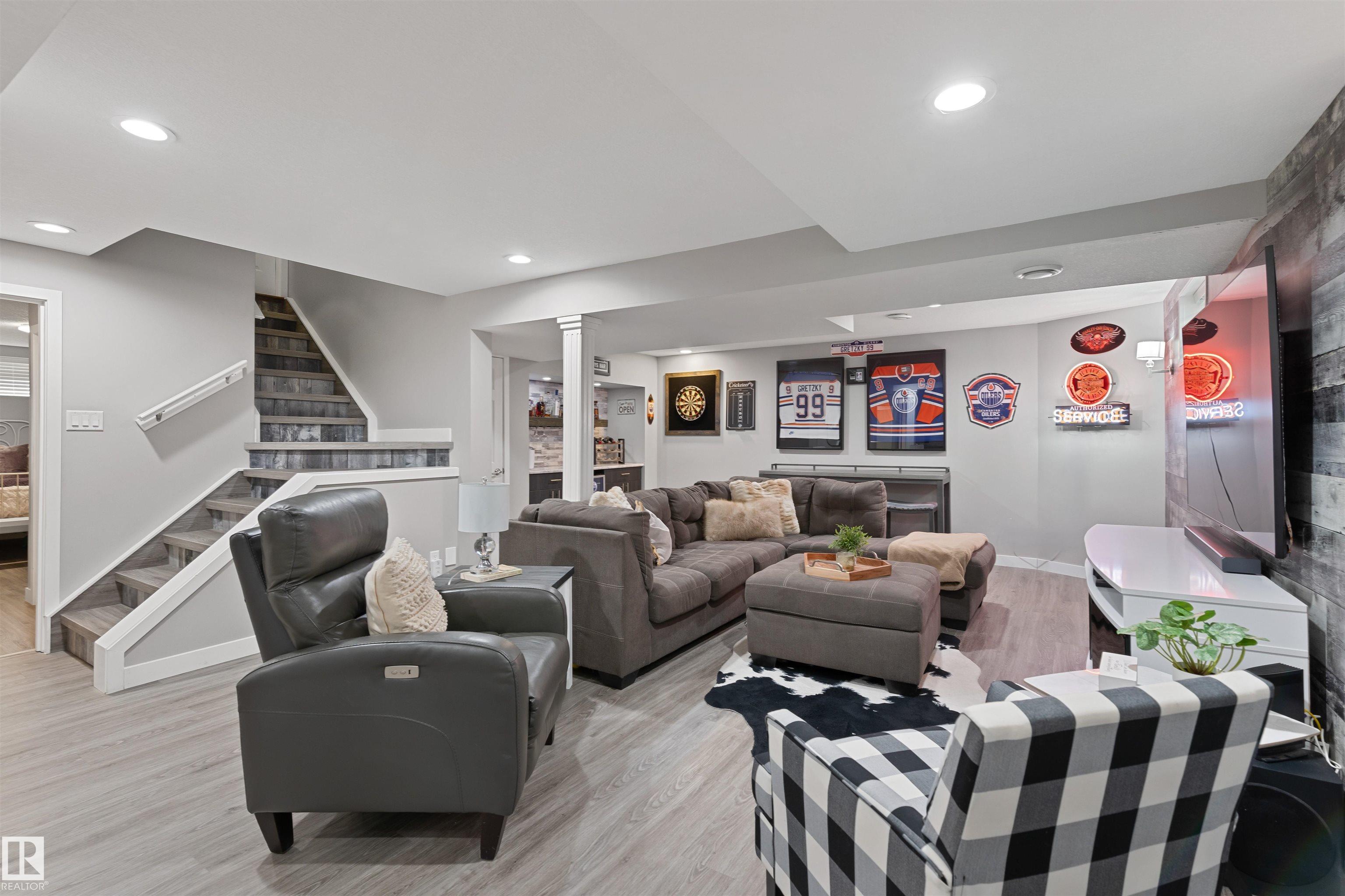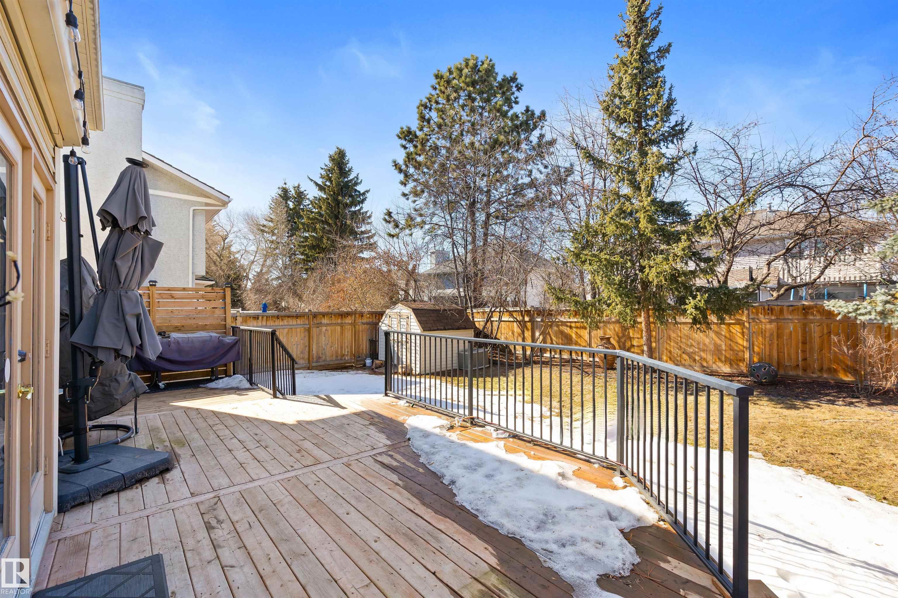 Situated on one of the most sought-after streets in desirable PINEVIEW, welcome to 18 Parkwood! This beautifully updated, F/F 2-storey offers 4 BEDRMS, 3.5 BATHS & DBL ATTCHD garage. Encompassing 2800+sqft total living space, the thoughtfully designed layout & abundance of natural light make the home feel both spacious & inviting. Main floor features living rm, central dining, bright kitchen w/ SS appliances, ample counter space & prep island, as well as cozy family rm w/wood burning FP. Completing the main floor is an updated 1/2 BATH & LAUNDRY /MUDROOM. Upstairs, you'll LOVE the generous primary w/ gorgeous 5 pc ENSUITE & WIC, as well as 2 addt'l bedrms & 4 pc bath. Downstairs, the F/F basement includes rec room, 4th bedrm, 3 pc bath, flex room/den & lots of STORAGE! Outside, enjoy the large deck & fully landscaped, private backyard. UPDATES: flooring (2023), ensuite (2023), HWT & deck (2022). Walking distance to schools & parks, & easy access to Servus Place, Henday & other major amenities!