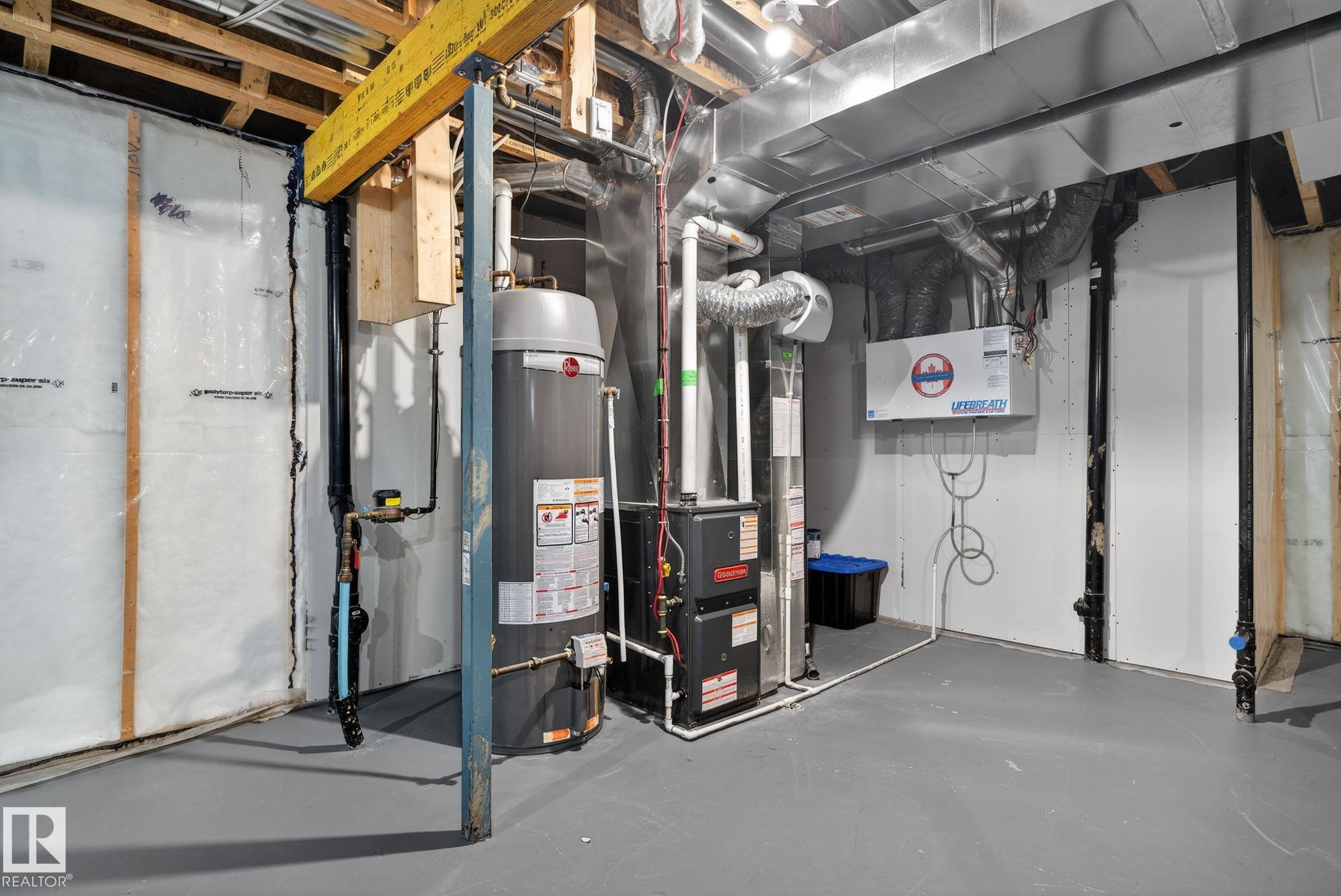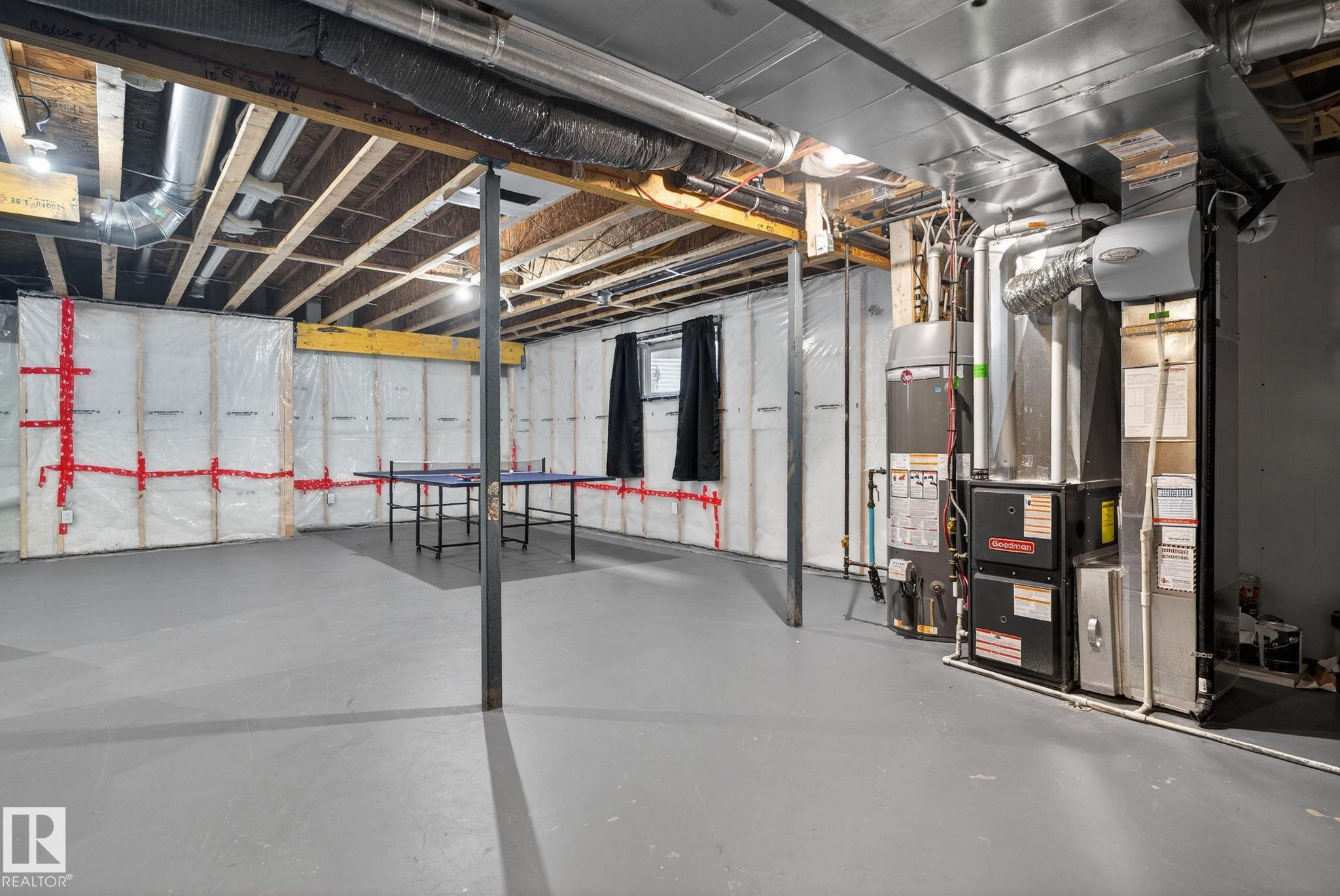 Step into this thoughtfully designed, move-in-ready, 4-bedroom home by Homexx. The open-concept main floor welcomes you with a spacious entry that leads past a generous den into the bright, inviting living area, featuring a cozy gas fireplace. The kitchen is sure to impress with granite countertops, a corner pantry, SS appliances, and a unique style backsplash, all complemented by an abundance of natural sunlight. The dining area opens onto a spacious deck that spans the entire length of the home, overlooking a beautiful view of the yard. A convenient powder room, main-floor laundry, and central A/C add comfort and ease. Upstairs, you'll find 4 bedrooms PLUS a bonus room, a highly desirable feature. Three generously sized bedrooms accompany a beautiful primary retreat featuring a walk-in closet and an ensuite with a separate shower and relaxing soaker tub. Ideally located close to scenic walking trails, the Lacombe Dog Park, the Sturgeon River, and many local amenities. This truly is an exceptional home!
