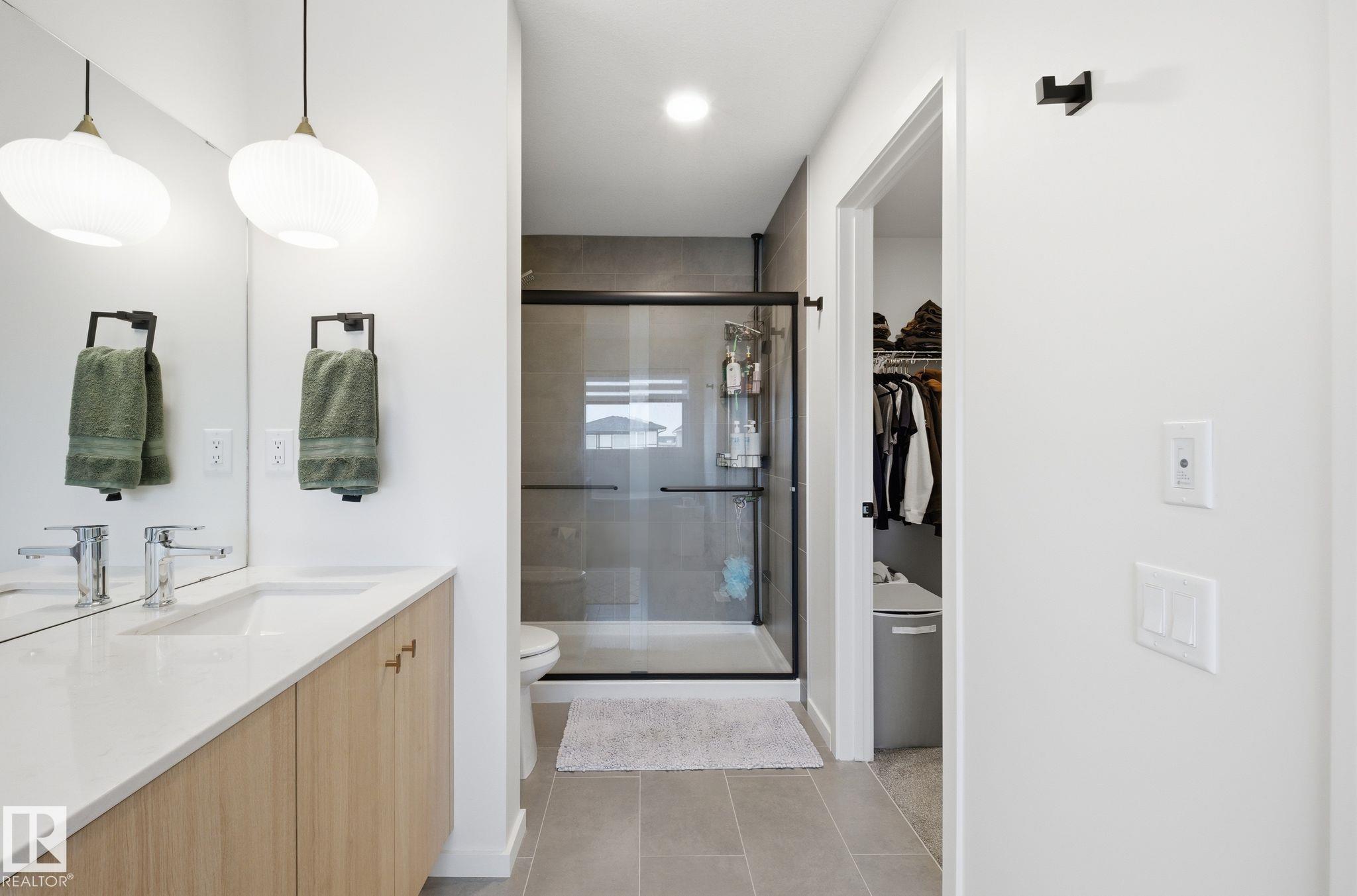 Imagine a NEW HOME with all the landscaping, fence, deck and Air Conditioning complete?! This could be yours in the family friendly community of Riverside. This 2024 Urbanage Aspen Model features a beautiful open concept main floor, great for entertaining and family time, with a walk-in pantry. This floor is complimented by a 2-pce powder room and mudroom with plenty of storage closets. Upstairs you will find the spacious primary bedroom with an attached 5-pce ensuite and walk-in closet for your personal oasis. Two additional bedrooms located at the opposite end of the upper level with a 4-piece bathroom and upstairs laundry room with shelving and a tabletop for folding. Tankless water heater, an electric heat pump for future installation of solar panels and a heated attached garage. The basement is unspoiled (with rough-in) and waiting for you to create the space you and your family need! Close to every convenience, as well as a park and open field plus Ray Gibbons for quick access to Edmonton.